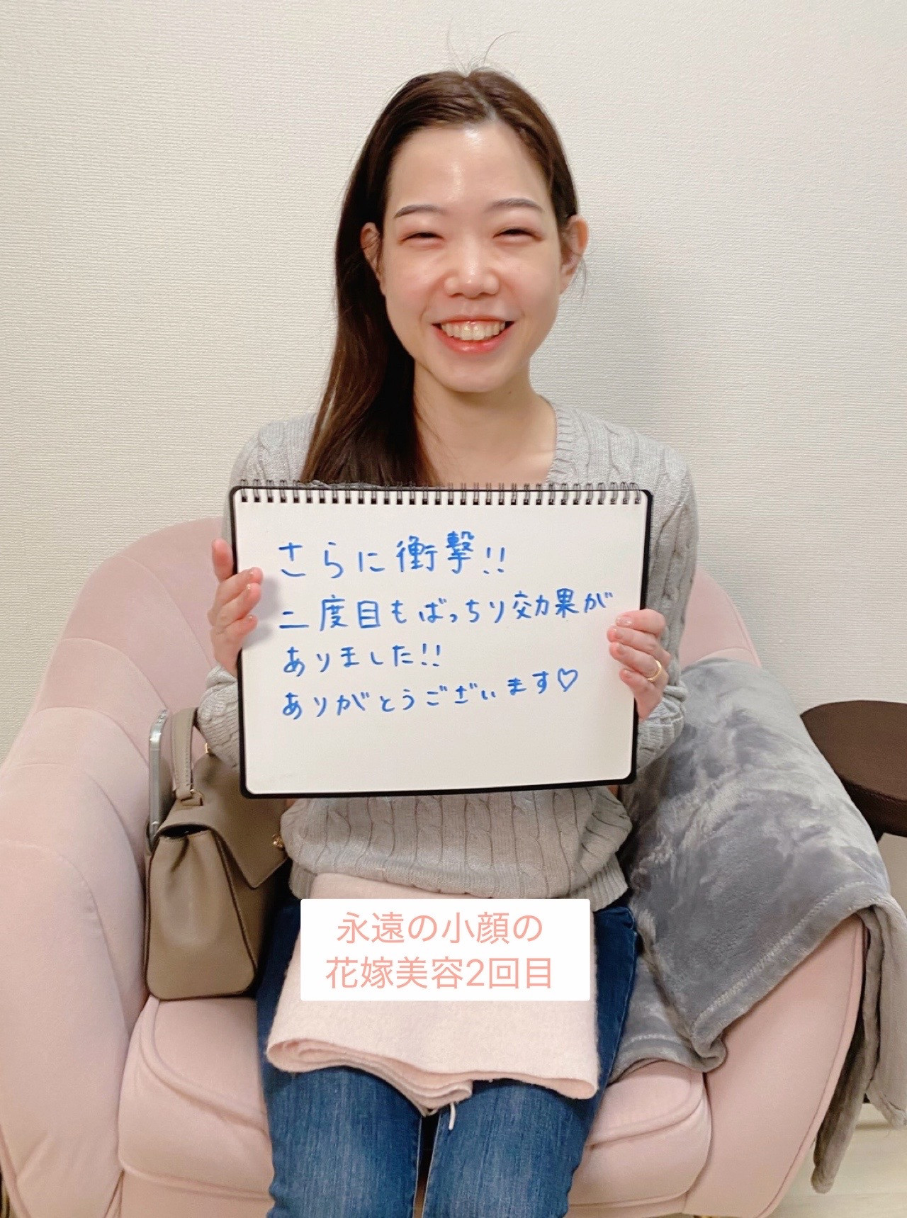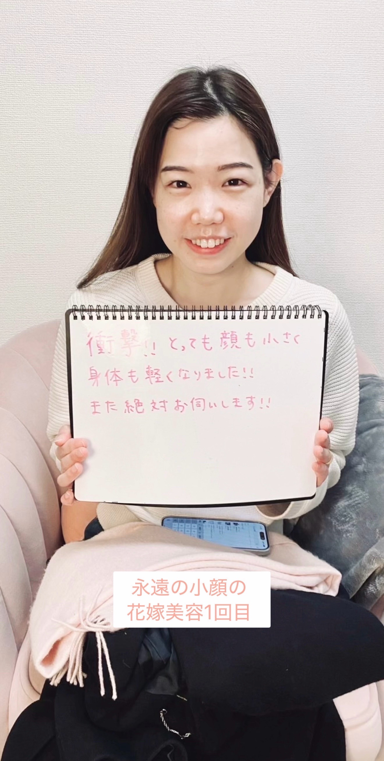 永遠の小顔で好評のブライダル前の小顔施術。1回毎にさらなる変化をご実感いただきとても嬉しいです。
